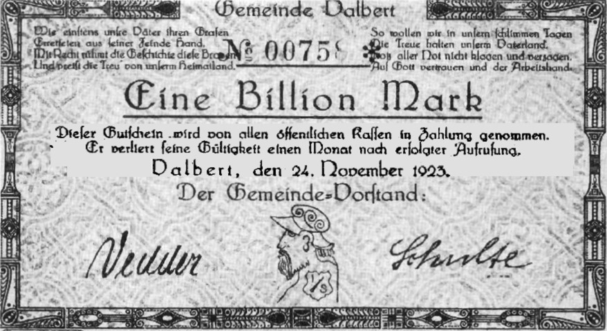 Auch auf dem Valberter Notgeld von 1923 ist dieses Wappen zu sehen.